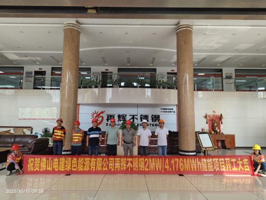 10月15日,在佛山市南海再辉不锈钢制品有限公司内,由佛山电建集团有限公司下属企业佛山电建绿色能源有限公司(简称:绿能公司)投资建设的储能项目举行简洁而隆重的开工仪式。 图:再辉储能项目开工现场 这一项目