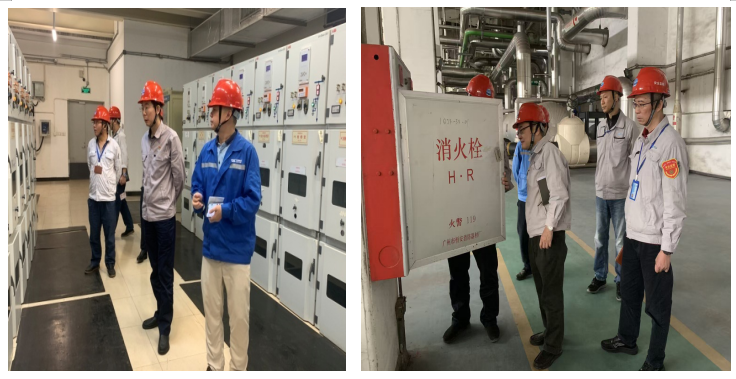 恒益热电公司领导漆洪峰、韦奕华分别检查配电室设备和汽机房设备