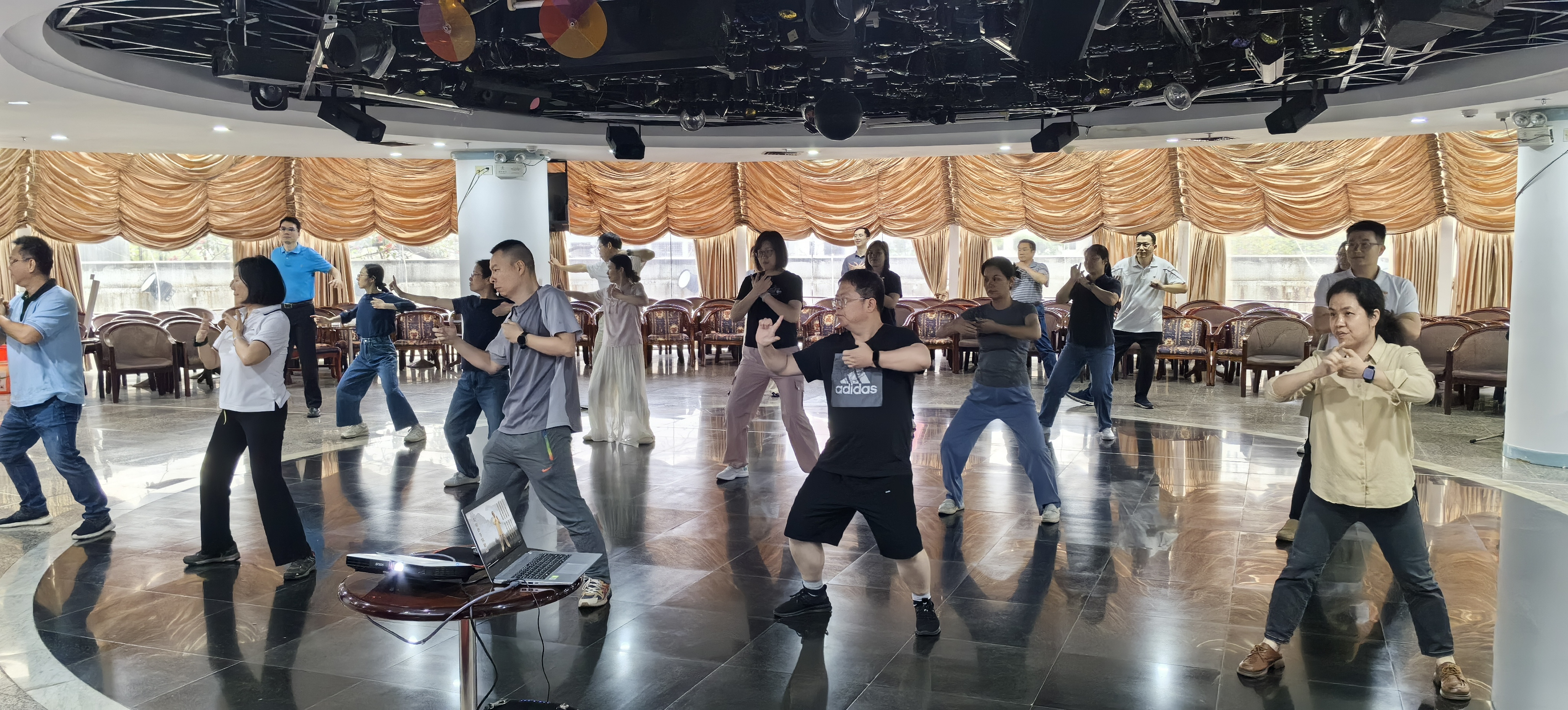 开课当天,活动室里氛围轻松愉悦。职工们利用午休时间,跟随教学视频认真学习八段锦的基础招式,从起势到收势,一招一式力求标准。八段锦动作舒缓柔和、简单易学,无需专业场地与器械,非常适合久坐办公的职场人群。大家在循序渐进的练习中,有效缓解了工作带来的疲劳,感受着传统养生功法疏通经络、调和气血的独特魅力。
